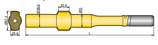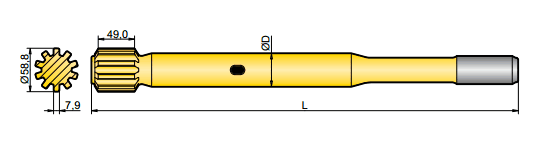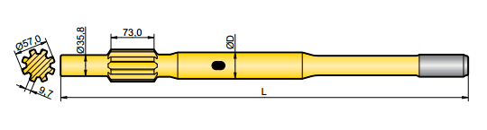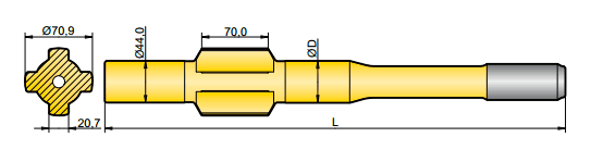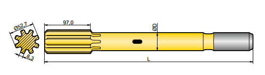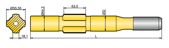 釬尾用于轉(zhuǎn)移鉆機和鉆桿的能量,一端連接于鉆機,一端連接于鉆桿,因此鉆機的能量就得以傳送到鉆頭,并最終達到掘進的目的。